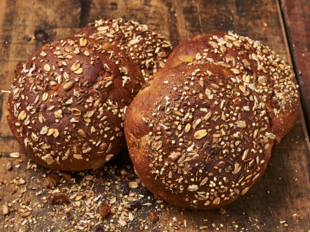 Zachte tarwebollen gevuld met vruchten en noten. Lekker om zo te eten of te beleggen!
