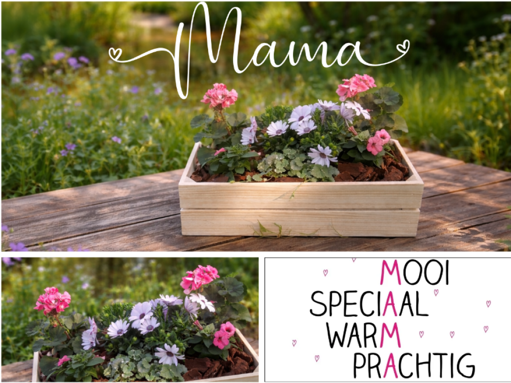 Speciaal voor Moederdag hebben onze toppers iets bijzonders gemaakt: prachtige plantenbakken, gevuld met kleurrijke zomerbloeiersen afgewerkt met boomschors voor een verzorgde en stijlvolle uitstraling.